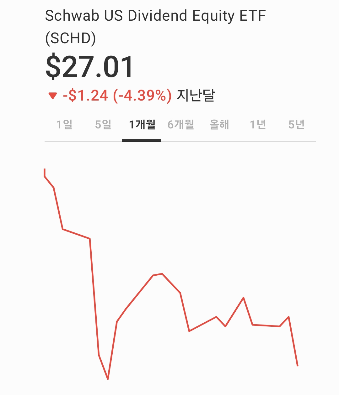 최근 슈왑 미국 배당주 ETF(SCHD, 슈드)의 주가 하락이 투자자들 사이에서 큰 관심을 받고 있다. 이번 글에서는 SCHD의 최근 하락 원인과 향후 전망에 대해 자세히 살펴보겠다.