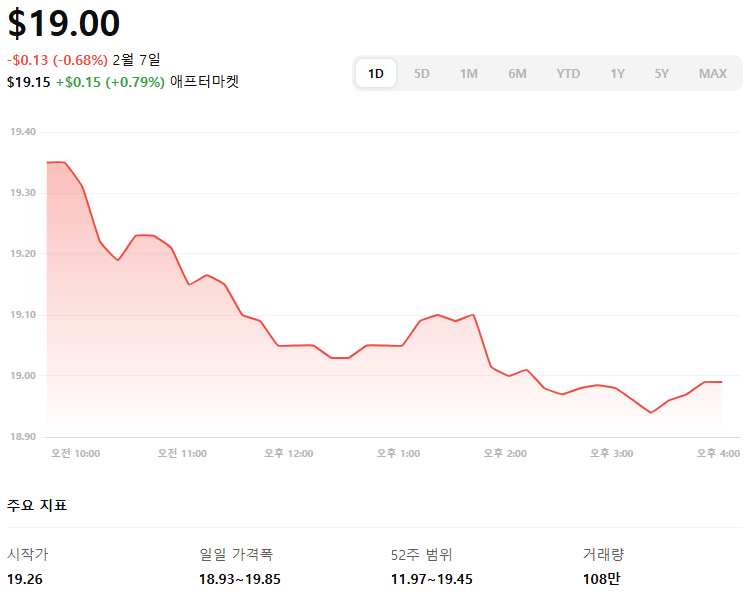 - 전일 종가: 19.13달러
